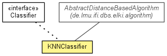 - the type of DatabaseObjects handled by this Algorithm@Title(value="kNN-classifier") @Description(value="Lazy classifier classifies a given instance to the majority class of the k-nearest neighbors.") public class KNNClassifier<O> extends AbstractDistanceBasedAlgorithm<O,Result> implements Classifier<O>