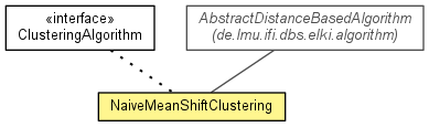 - Vector type@Reference(authors="Y. Cheng", title="Mean shift, mode seeking, and clustering", booktitle="IEEE Transactions on Pattern Analysis and Machine Intelligence 17-8", url="http://dx.doi.org/10.1109/34.400568") public class NaiveMeanShiftClustering<V extends NumberVector> extends AbstractDistanceBasedAlgorithm<V,Clustering<MeanModel>> implements ClusteringAlgorithm<Clustering<MeanModel>>