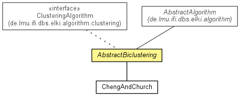 - Cluster model typepublic abstract class AbstractBiclustering<V extends NumberVector,M extends BiclusterModel> extends AbstractAlgorithm<Clustering<M>> implements ClusteringAlgorithm<Clustering<M>>