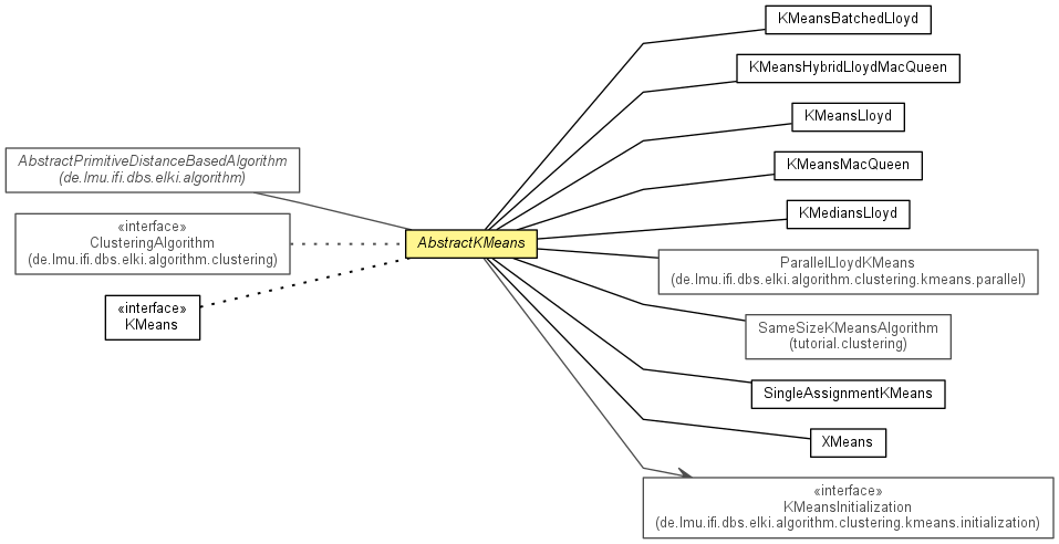 - Cluster model typepublic abstract class AbstractKMeans<V extends NumberVector,M extends Model> extends AbstractPrimitiveDistanceBasedAlgorithm<NumberVector,Clustering<M>> implements KMeans<V,M>, ClusteringAlgorithm<Clustering<M>>