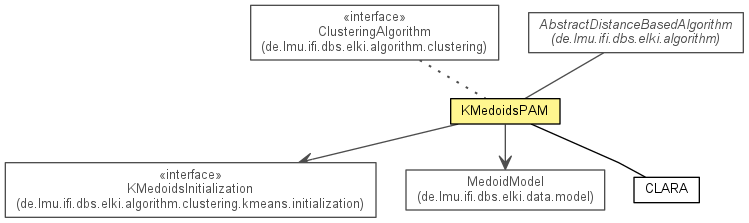- vector datatype@Title(value="Partioning Around Medoids") @Reference(title="Clustering by means of Medoids", authors="Kaufman, L. and Rousseeuw, P.J.", booktitle="Statistical Data Analysis Based on the L1-Norm and Related Methods") public class KMedoidsPAM<V> extends AbstractDistanceBasedAlgorithm<V,Clustering<MedoidModel>> implements ClusteringAlgorithm<Clustering<MedoidModel>>