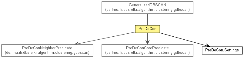 - the type of NumberVector handled by this Algorithm@Title(value="PreDeCon: Subspace Preference weighted Density Connected Clustering") @Description(value="PreDeCon computes clusters of subspace preference weighted connected points. The algorithm searches for local subgroups of a set of feature vectors having a low variance along one or more (but not all) attributes.") @Reference(authors="C. B\u00f6hm, K. Kailing, H.-P. Kriegel, P. Kr\u00f6ger", title="Density Connected Clustering with Local Subspace Preferences", booktitle="Proc. 4th IEEE Int. Conf. on Data Mining (ICDM\'04), Brighton, UK, 2004", url="http://dx.doi.org/10.1109/ICDM.2004.10087") public class PreDeCon<V extends NumberVector> extends GeneralizedDBSCAN