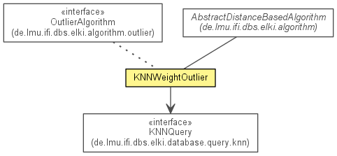 - the type of DatabaseObjects handled by this Algorithm@Title(value="KNNWeight outlier detection") @Description(value="Outlier detection based on the sum of distances of an object to its k nearest neighbors.") @Reference(authors="F. Angiulli, C. Pizzuti", title="Fast Outlier Detection in High Dimensional Spaces", booktitle="Proc. European Conference on Principles of Knowledge Discovery and Data Mining (PKDD\'02), Helsinki, Finland, 2002", url="http://dx.doi.org/10.1007/3-540-45681-3_2") @Alias(value={"de.lmu.ifi.dbs.elki.algorithm.outlier.KNNWeightOutlier","knnw"}) public class KNNWeightOutlier<O> extends AbstractDistanceBasedAlgorithm<O,OutlierResult> implements OutlierAlgorithm