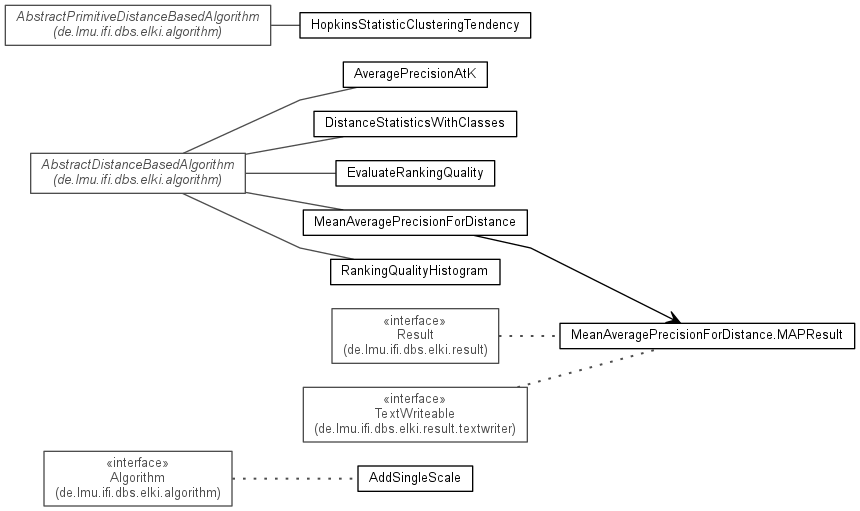 The algorithms in this package perform statistical analysis of the data (e.g. compute distributions, distance distributions etc.)Copyright © 2014 ELKI Development Team, Lehr- und Forschungseinheit für Datenbanksysteme, Ludwig-Maximilians-Universität München. License information.