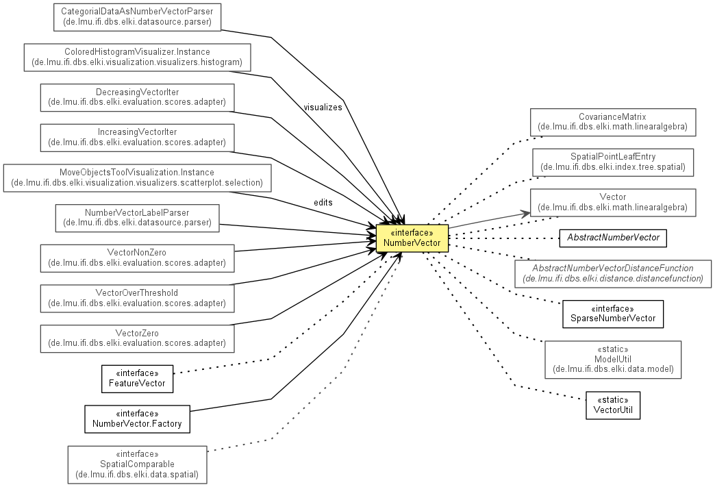 NumberVector of VCopyright © 2014 ELKI Development Team, Lehr- und Forschungseinheit für Datenbanksysteme, Ludwig-Maximilians-Universität München. License information.