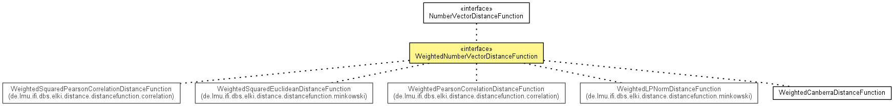 - Vector type, usually NumberVector or above.public interface WeightedNumberVectorDistanceFunction<V> extends NumberVectorDistanceFunction<V>