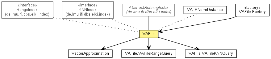 - Vector type@Title(value="An approximation based data structure for similarity search") @Reference(authors="Weber, R. and Blott, S.", title="An approximation based data structure for similarity search", booktitle="Report TR1997b, ETH Zentrum, Zurich, Switzerland", url="http://citeseerx.ist.psu.edu/viewdoc/download?doi=10.1.1.40.480&rep=rep1&type=pdf") public class VAFile<V extends NumberVector> extends AbstractRefiningIndex<V> implements KNNIndex<V>, RangeIndex<V>